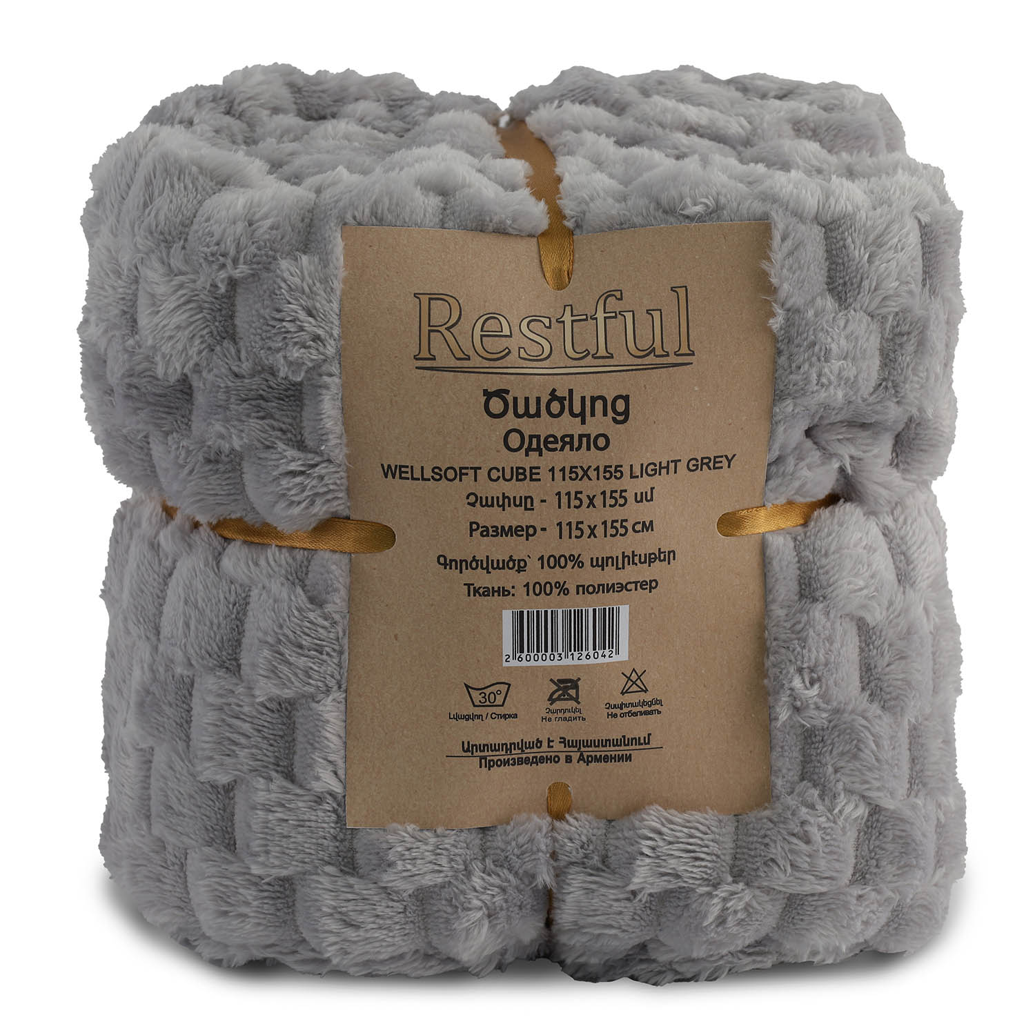 ძირითადი ატრიბუტები პლედი RESTFUL WELLSOFT CUBE 115X155 LIGHT GREY