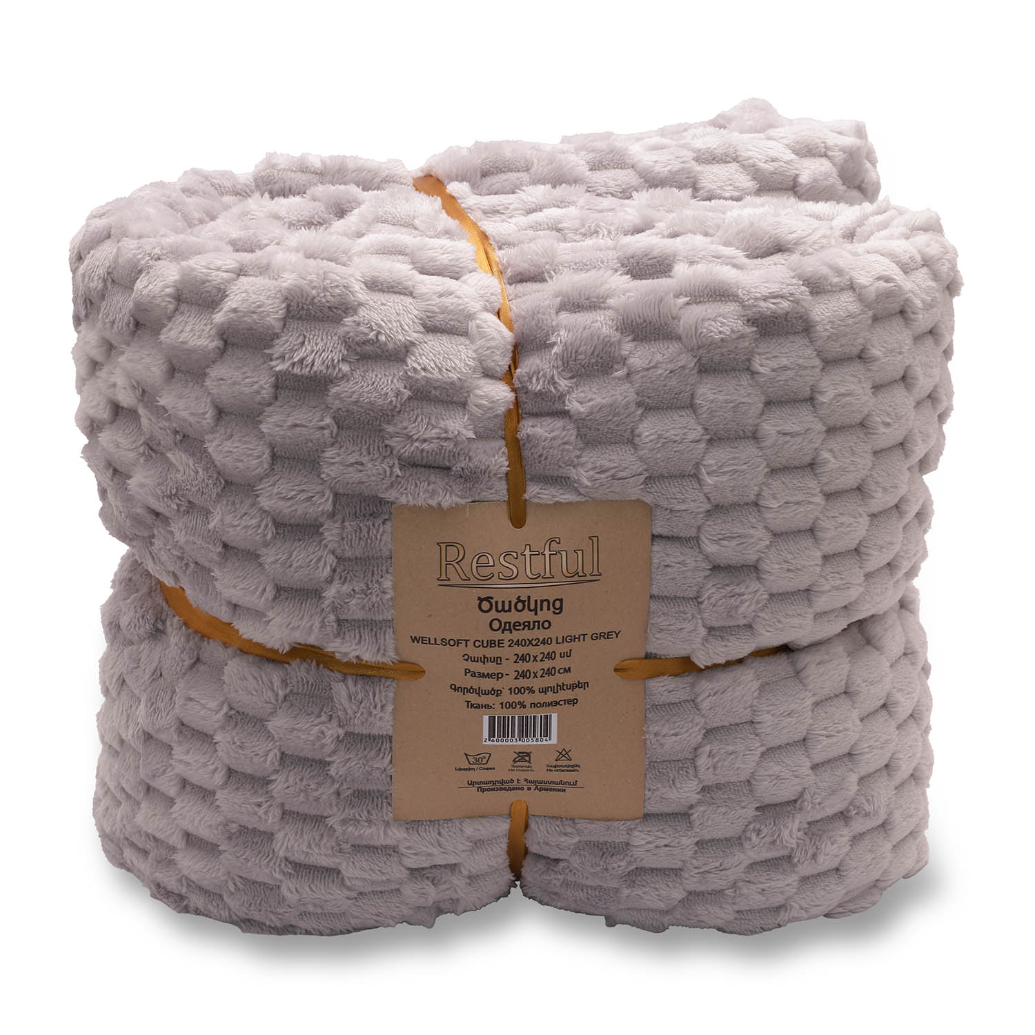ძირითადი ატრიბუტები პლედი RESTFUL WELLSOFT CUBE 240X240 LIGHT GREY